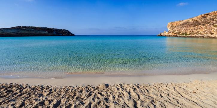 Paria calma de area branquinha e agua cristalina, essa praia é ideal para os pequenos e fica em Spiaggia dei Conigli